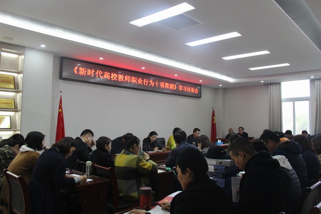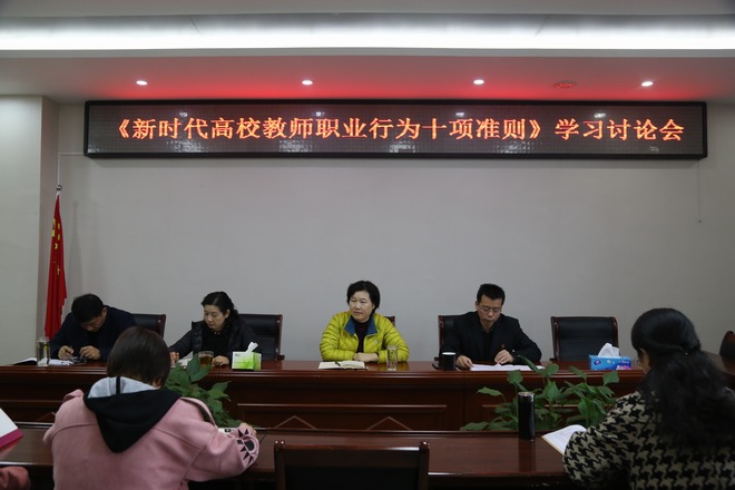 近日,教育部印发《新时代高校教师职业行为十项准则》,金年会金字招牌诚信至上于11月20日在社科楼311会议室组织全体教职工进行学习。党委书记王振海主持会议,带领全体教职工逐条进行了认真学习。