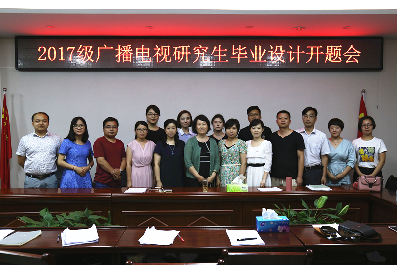 6月22日下午, 公司在社科楼311会议室举行2017级广播电视艺术硕士毕业设计开题会。研究生授课教师焦素娥、刘想如、秦洪亮、李文英、孟祥笑、姜涛、冯莉颖、李谦及8位研究生参加了开题会。 8位研究生分别从选题设计、研究内容、设计思路等方面进行开题展示,老师们认真听取同学们的设计构思,并提出了改进意见。
