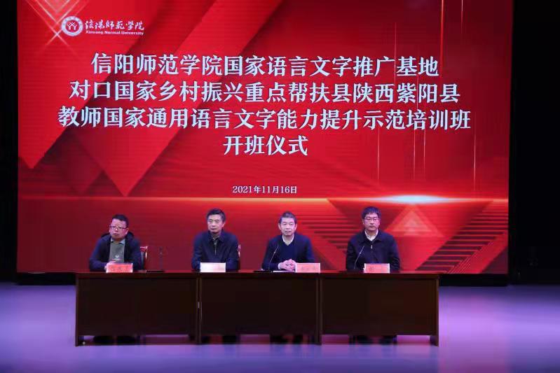 本次在线示范培训工作是信阳师范学院获批国家通用语言文字推广基地以来首次承接教育部语用司的重大培训项目,主要负责对接国家乡村振兴重点帮扶县陕西省紫阳县的100位中小学教师,接下来将开展为期50学时的国家通用语言文字能力提升在线示范培训。