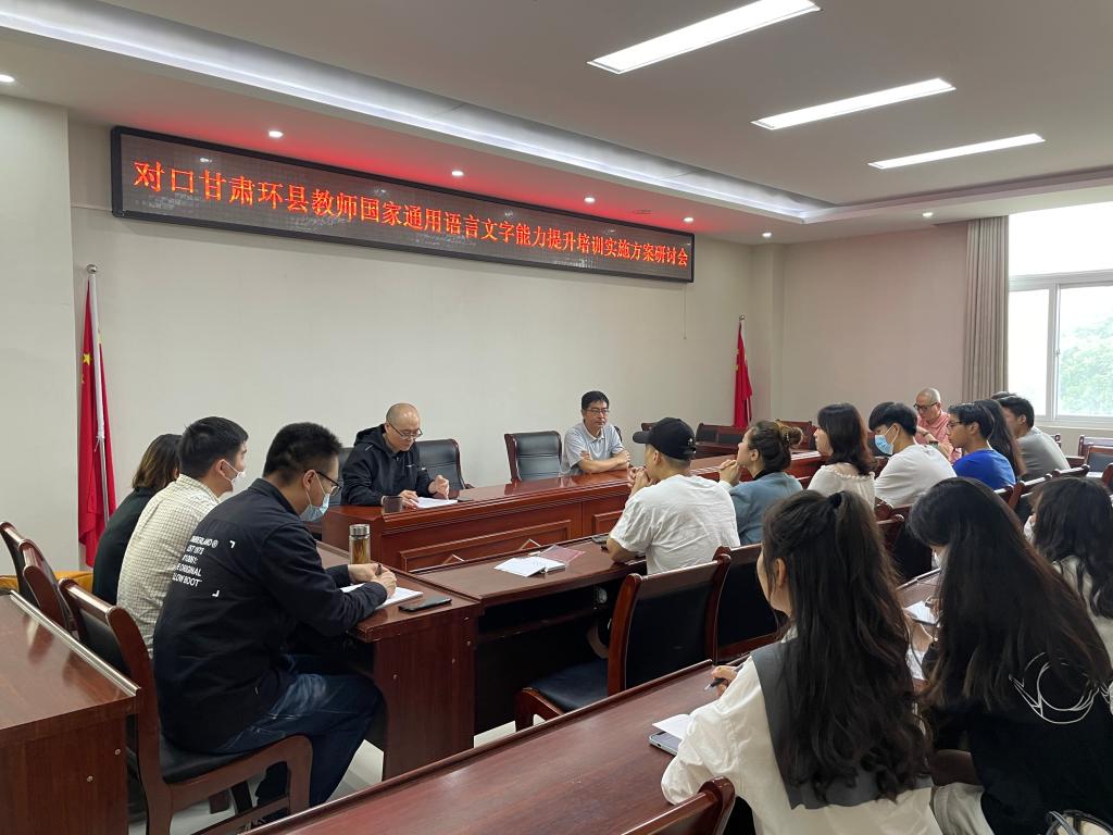 根据教育部语用司“关于对国家乡村振兴重点帮扶县开展教师国家通用语言文字能力提升在线示范培训的通知”(教语用司函〔2022〕7号),信阳师范学院国家语言文字推广基地成功入选2022年相关培训项目,将对口甘肃省庆阳市环县100名中小学教师开展50学时的国家通用语言文字能力提升在线示范培训。