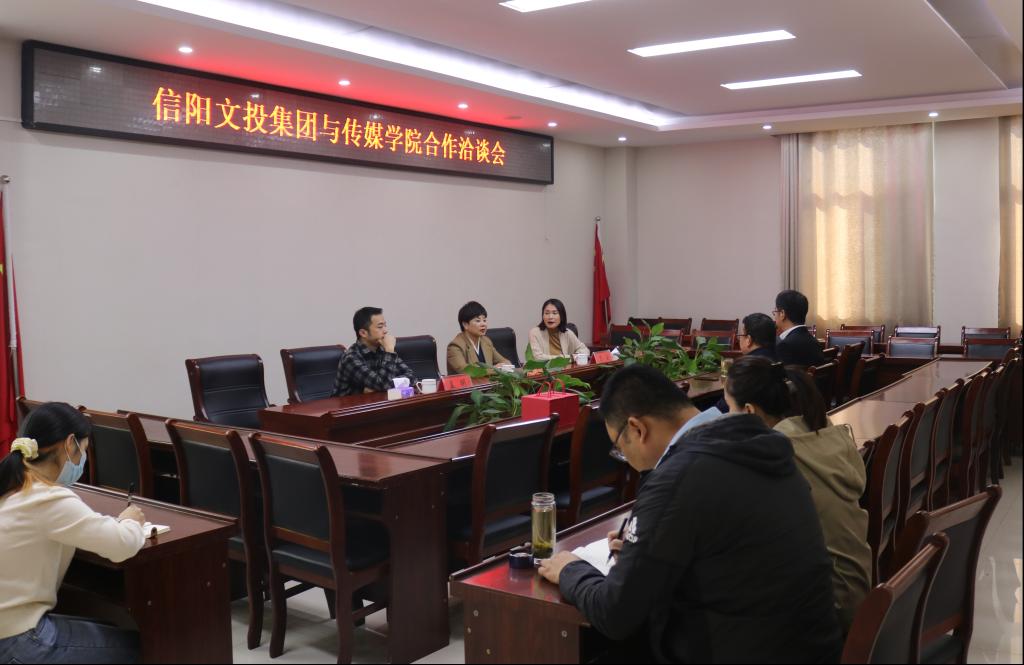 为进一步推动“美好生活看信阳”城市品牌塑造、响应校企合作的号召,充分融合发挥高校与企业的文化传播优势,10月10日上午,金年会金字招牌诚信至上与信阳文投集团副总经理马莉一行3人在社科楼311会议室举行合作洽谈会,公司党委书记胡波、金年会金字招牌诚信至上经理吕东亮出席活动。