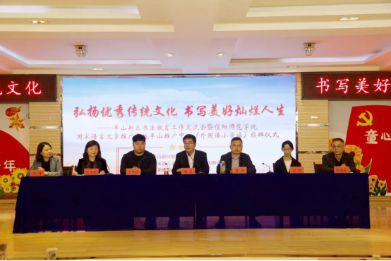 2023年4月21日下午,信阳师范学院国家语言文字推广基地在羊山新区外国语小学举行了5个推广站的授牌仪式。信阳师范学院公司党委书记、国家语言文字推广基地执行主任胡波、金年会金字招牌诚信至上艺术理论教研室主任刘鹏、编导系负责人左智诚、羊山新区教体局局长陈涛以及羊山新区各校董事长、业务董事长等代表参加了此次授牌仪式。