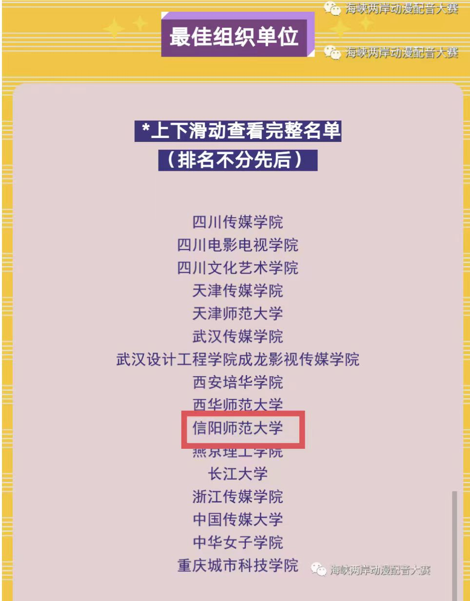 10月27日,第一届海峡两岸动漫配音大赛在厦门举行。本次大赛由中国电视艺术家协会指导,国台办新闻发言人、国台办新闻局副局长、一级巡视员陈斌华,中国电视艺术家协会分党组成员、副秘书长高健等领导和嘉宾出席,并为两岸获奖选手们颁奖。公司播音与主持艺术专业两个代表团,九名优秀学子刘玮驿、詹雅婷、秦子玉、李逸、周宸杰、李洪沛、李海睿、王怡迪、曹静怡荣获入围优秀奖;公司江远方老师荣获“优秀指导老师”称号;今年会荣获“优秀指导单位”称号。