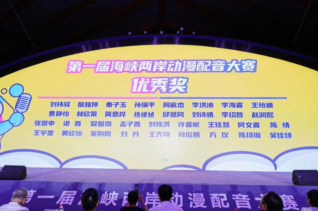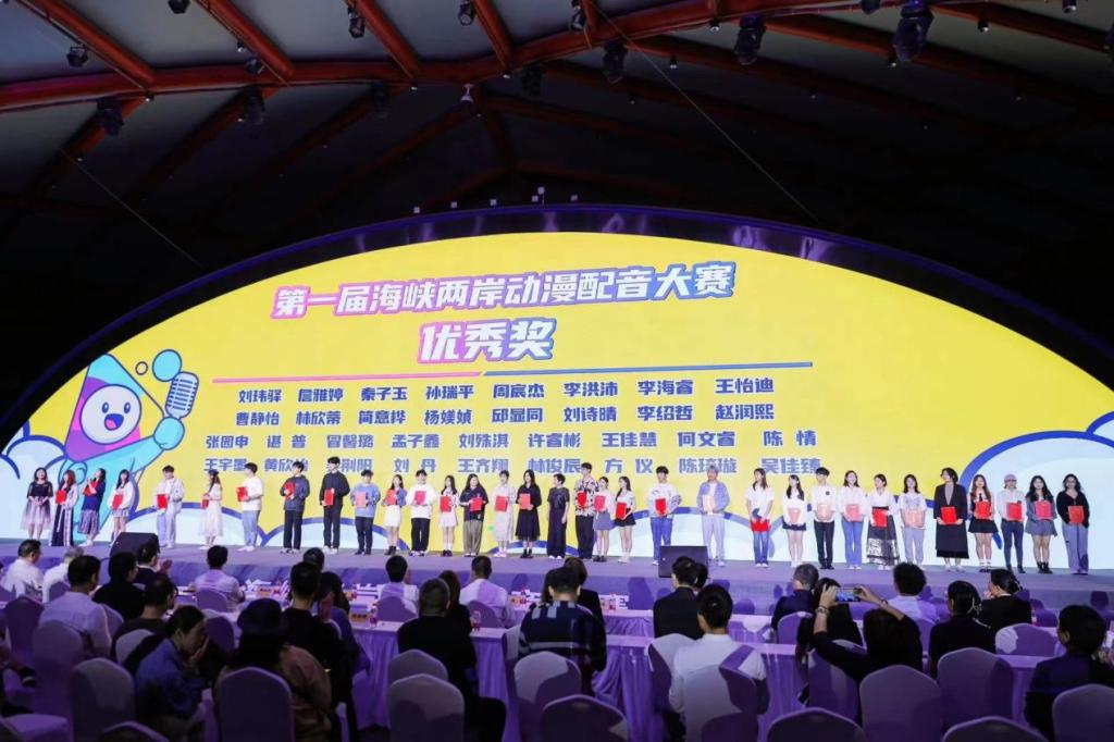 由中国电视艺术家协会指导,厦门市翔安区人民政府、厦门外图集团有限公司共同主办的第一届海峡两岸动漫配音大赛自7月启动以来,受到两岸青年积极参与和热烈反响。大赛共收到来自两岸多所高校、配音社团和声音工作室选送的2000多部参赛作品,经过广泛征稿和初赛,大赛共有160组选手入围决赛,最终评选出一等奖1组、奶龙专项奖1组、二等奖4组、三等奖6组、最佳创意奖24组、最具潜力奖24组、优秀奖100组、优秀指导教师50位、最佳组织单位50家。公司学子在比赛中展现出了扎实的配音功底和有创意的配音表演,赢得了评委和观众的一致好评,两岸评委代表黄婉彬、陈美贞上台与选手们合影。