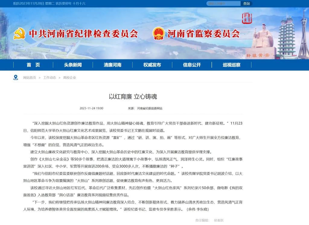 11月24日,河南省纪委监委官网又以《以红育廉 立心铸魂》为题,对公司的这一做法进行了专题宣传报道。